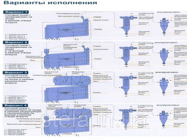 Все варианты характеризуются комбинациями идеально подобранных друг к другу воздушно-сепараторной и ситовой частей. Эти машины, таким образом, соответствуют самым высоким требованиям к процессам, например, предварительной очистки зерна при пропускной способности от 100 до 600 т/ч. Возможности гибкой настройки дают наилучшие результаты при тонкой очистке с производительностью от 35 до 400 т/ч.